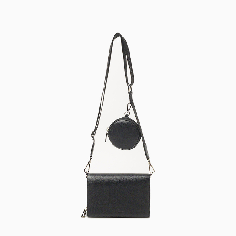 La bandolera Hush Puppies Bada  presenta un diseño estructurado y refinado. Está confeccionada en material sintético con acabado graneado. Dispone de tapa como cierre principal con botón imán, bolsillos internos con dos tipo plaque y otro central con cierre que incluye compartimiento para tarjetas. La correa es desmontable y regulable, personalizada con la identifiacion de la marca. Además, incluye un monedero desmontable con cierre. Medidas: alto 14 cm, ancho 19,5 cm y profundidad 6 cm.