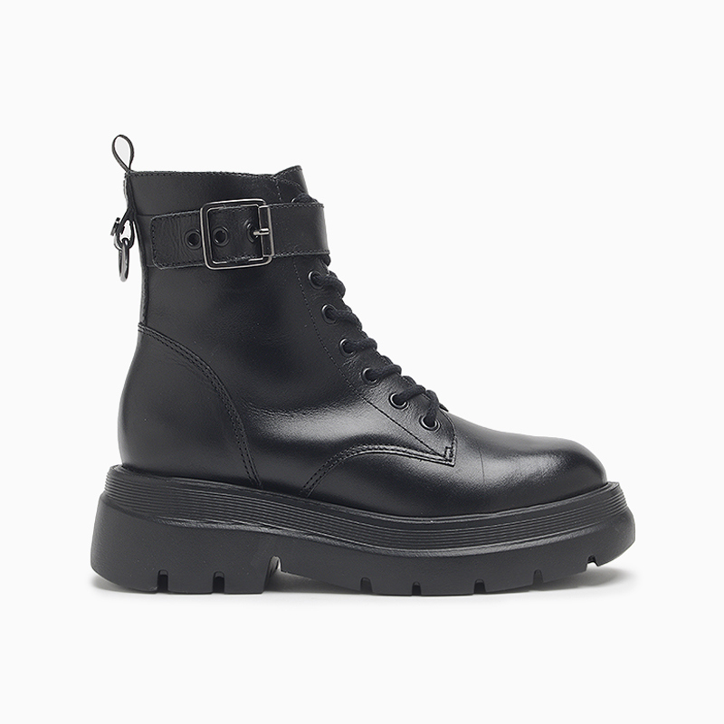 Borcego Hush Puppies Felicity de estilo urbano, confeccionadas en material cuero sintético de alta calidad. Diseño moderno con cordones frontales y cierre lateral que facilita el calce. Incluyen una hebilla decorativa que aporta un toque distintivo y elegante. Suela gruesa tipo plataforma, antideslizante y súper cómoda, ideal para uso diario.