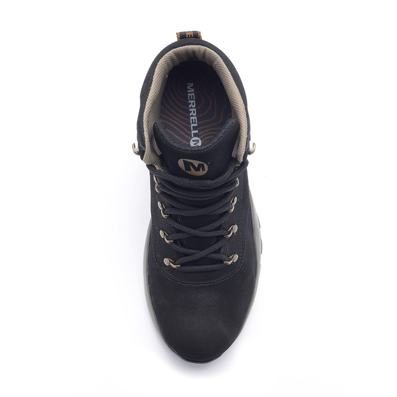 Bota outdoor de cuero Merrell gamuzado con ojalillos alpinos y doble cordón para customizar a gusto. Cuello acolchonado para mayor comodidad y fuelle de red para una mejor respiración.