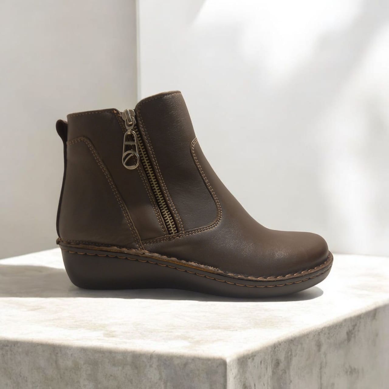 Bota confeccionada en cuero, con fondo goma antideslizante. Es ultra confortable, tiene doble ciierre y plantilla acolchada. Ideal para usarla todo el invierno.