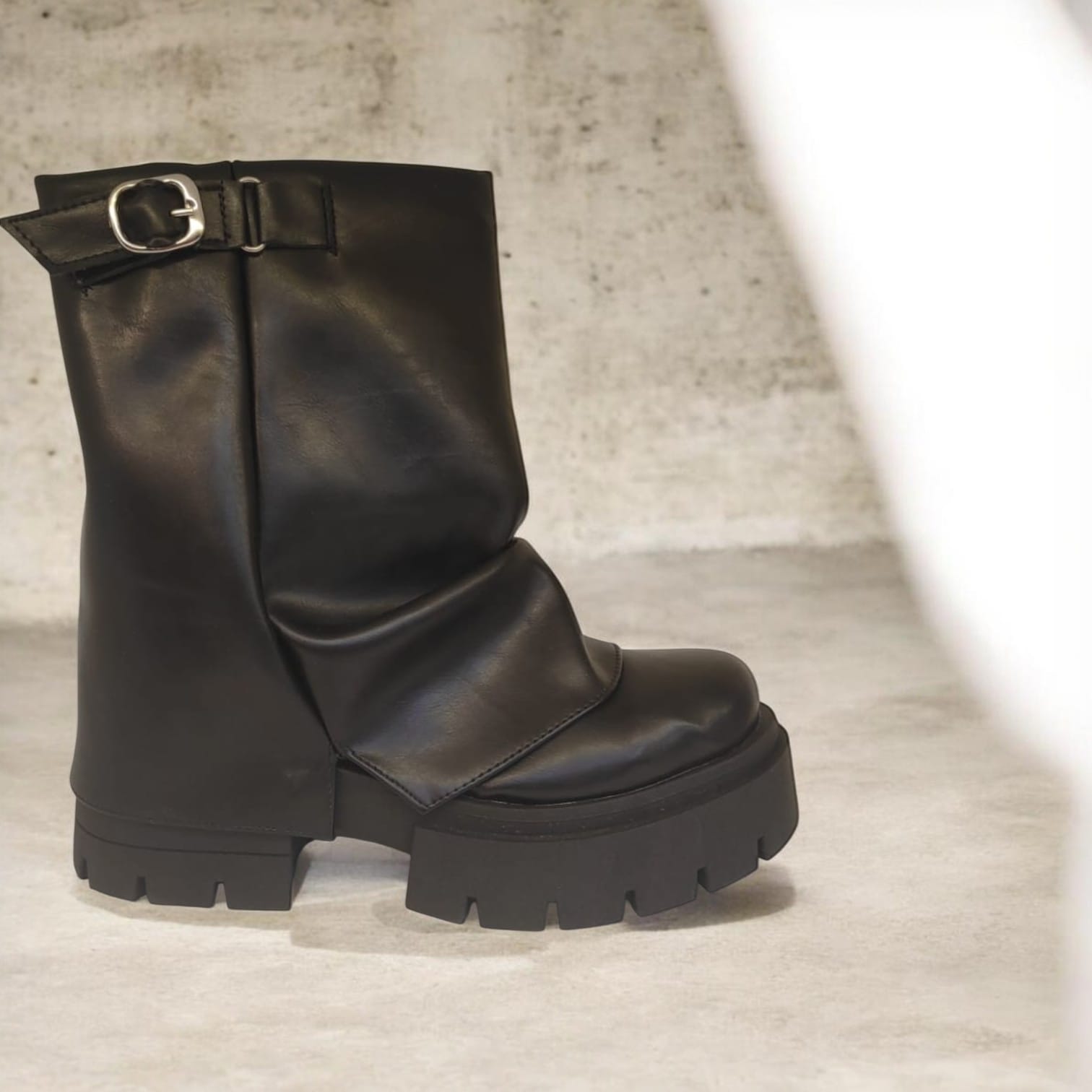 Borcegos  plataforma con diseño moderno y atrevido. Toque elegante y distintivo. Su suela gruesa tipo track brinda mayor estabilidad y comodidad al caminar, ideal para uso diario o para complementar looks urbanos con personalidad.