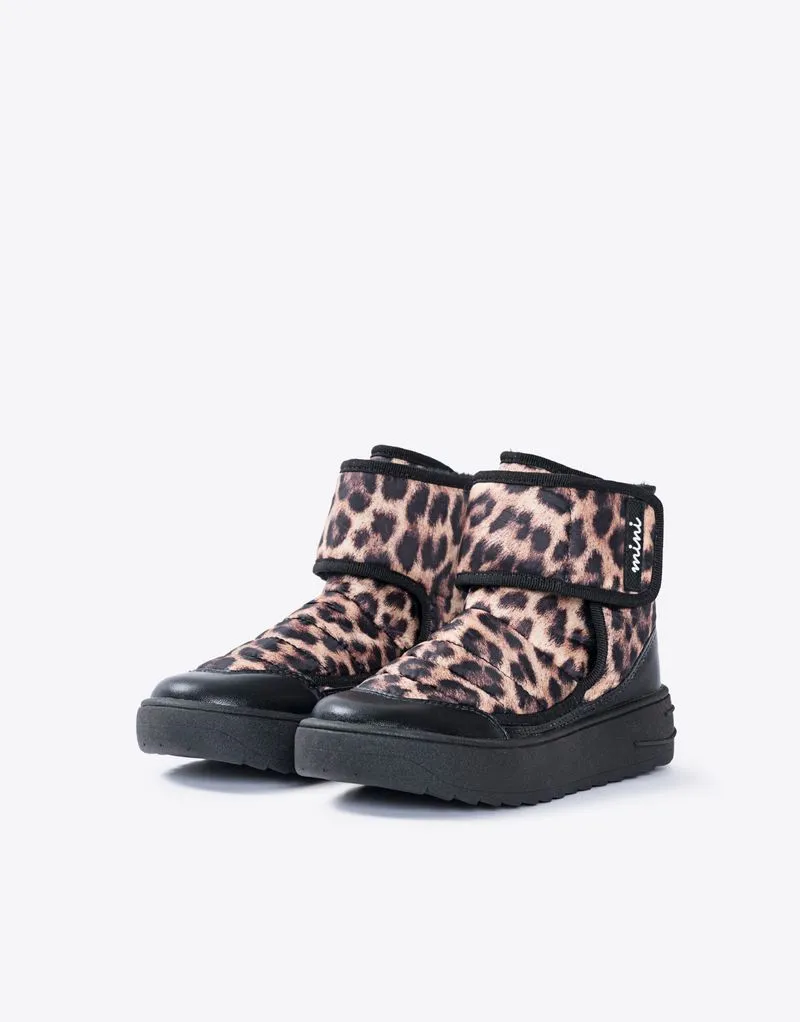 Bota de niña en textil y sintetico, caña baja. Base inyectada. Detalle de velcro regulable y avio marcario.