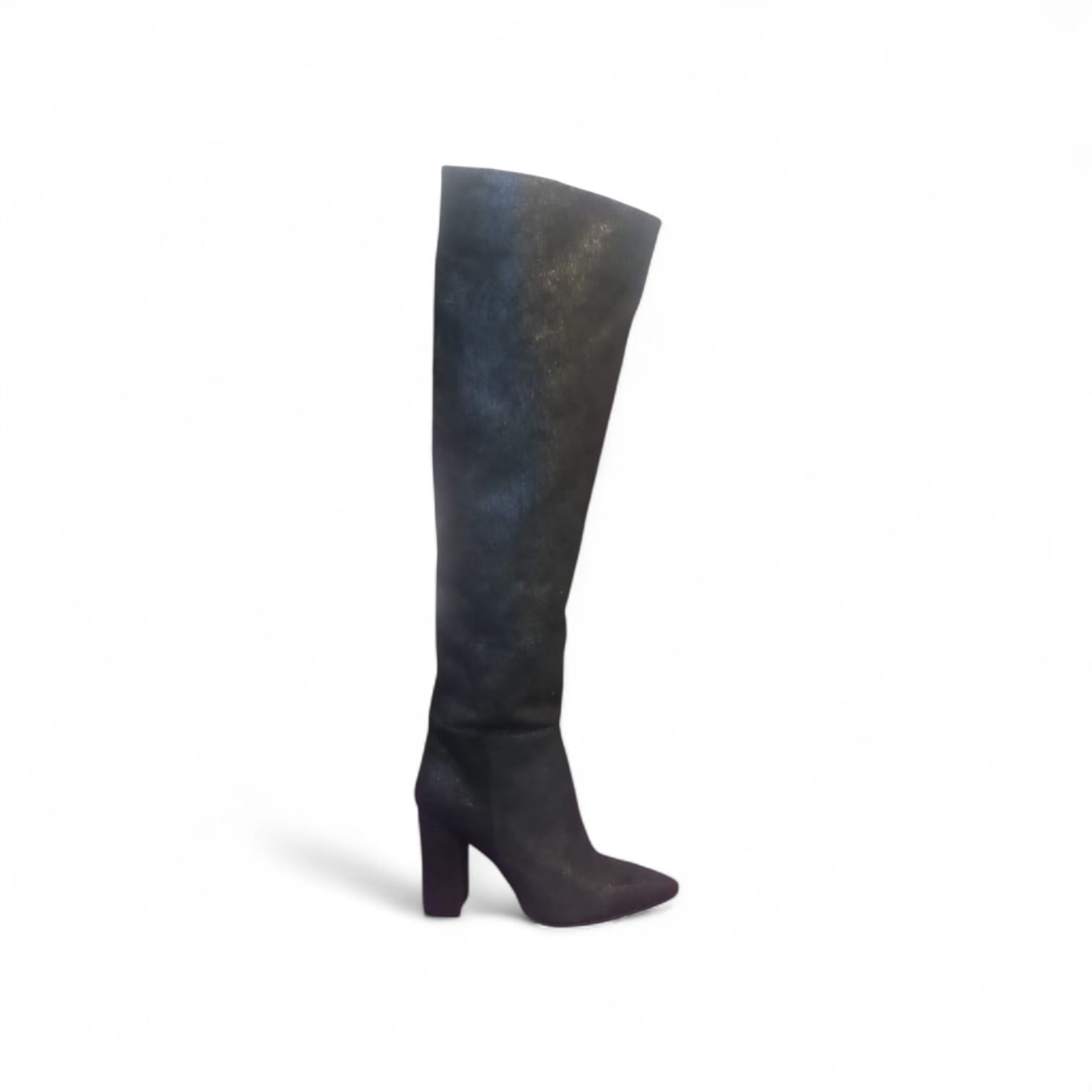 Bucanera cuero, caña alta y con taco de 8 cm. Para que te veas única. cuero nobuk.