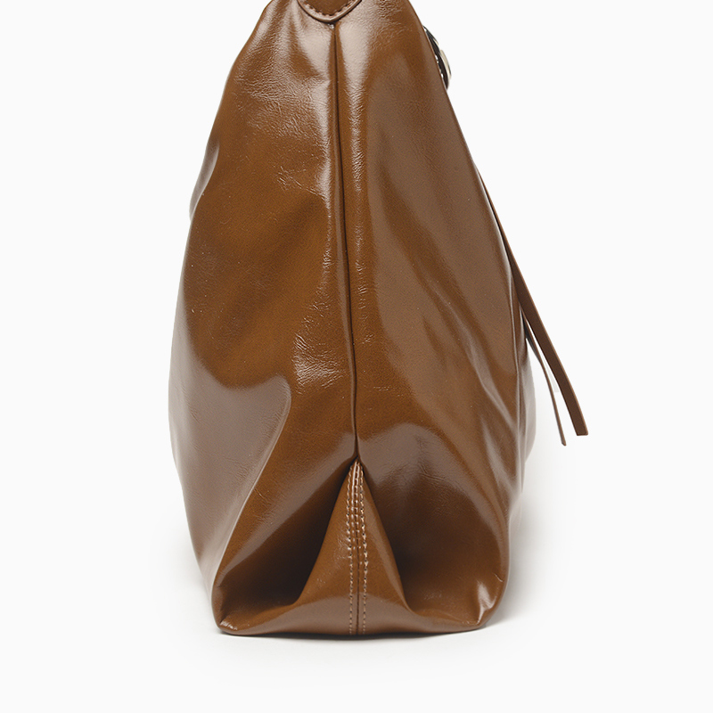 La cartera Hush Puppies Taggia color marrón, diseñada para llevar al hombro, está confeccionada en material sintético blando al tacto con acabado brilloso y vetas que imitan el cuero natural. Posee ornamento colgante metálico con ID de marca, acceso principal con cierre e interior forrado en tela a tono con bolsillo plaque y bolsillo con cierre para una mejor organización. Medidas: alto 29 cm, ancho 52 cm y profundidad 8 cm.