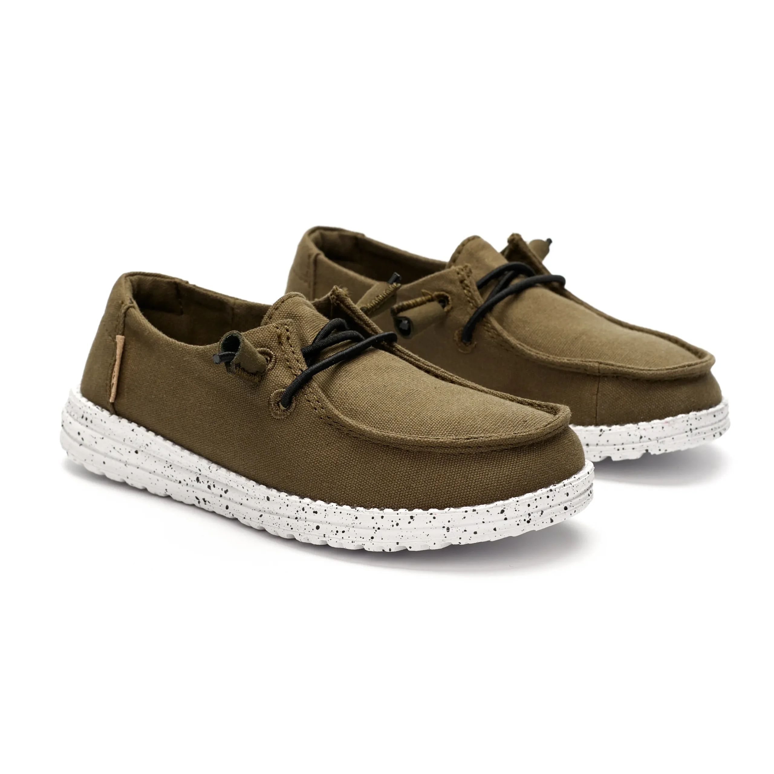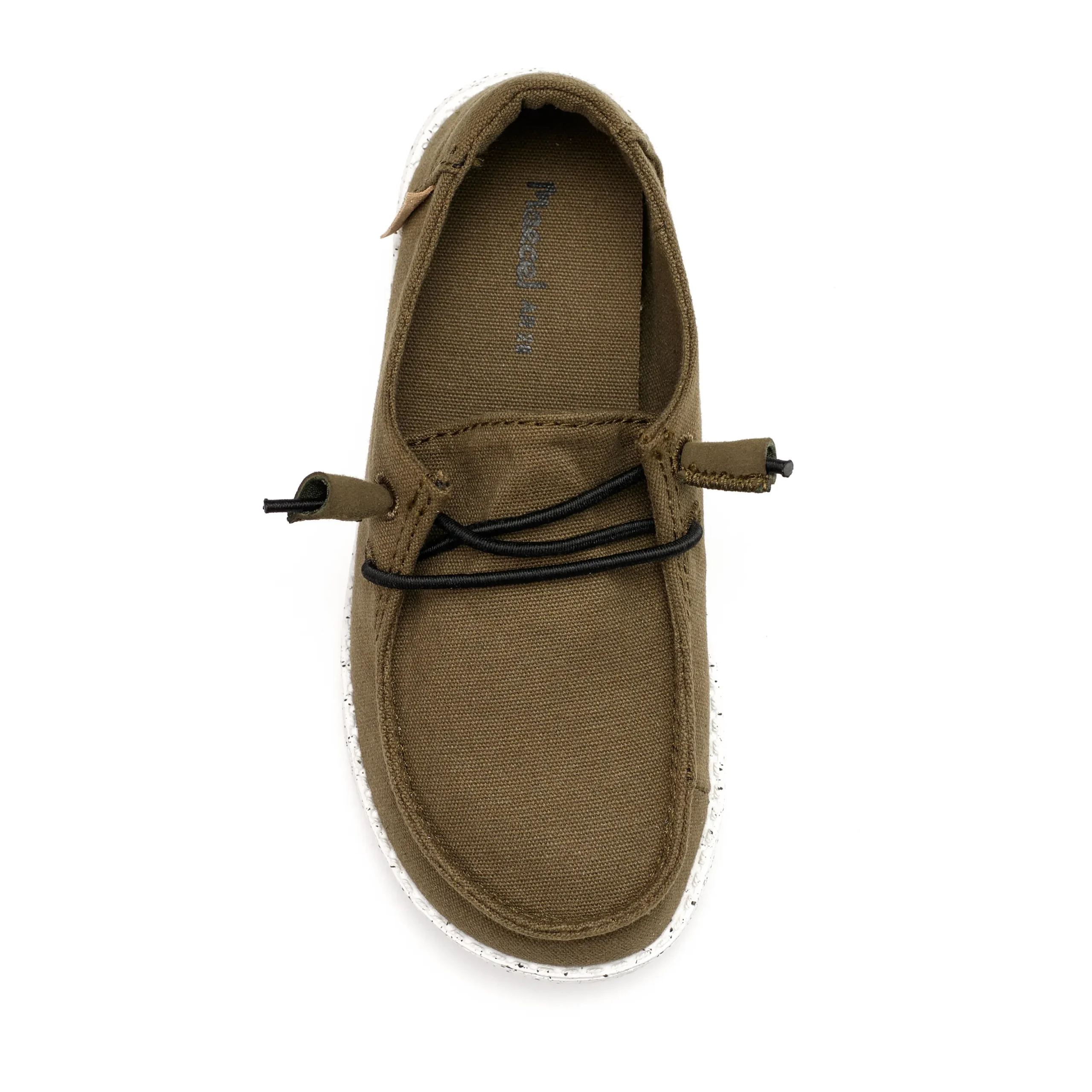 Náutico acordonado de lona, con plantilla cómoda y base liviana.