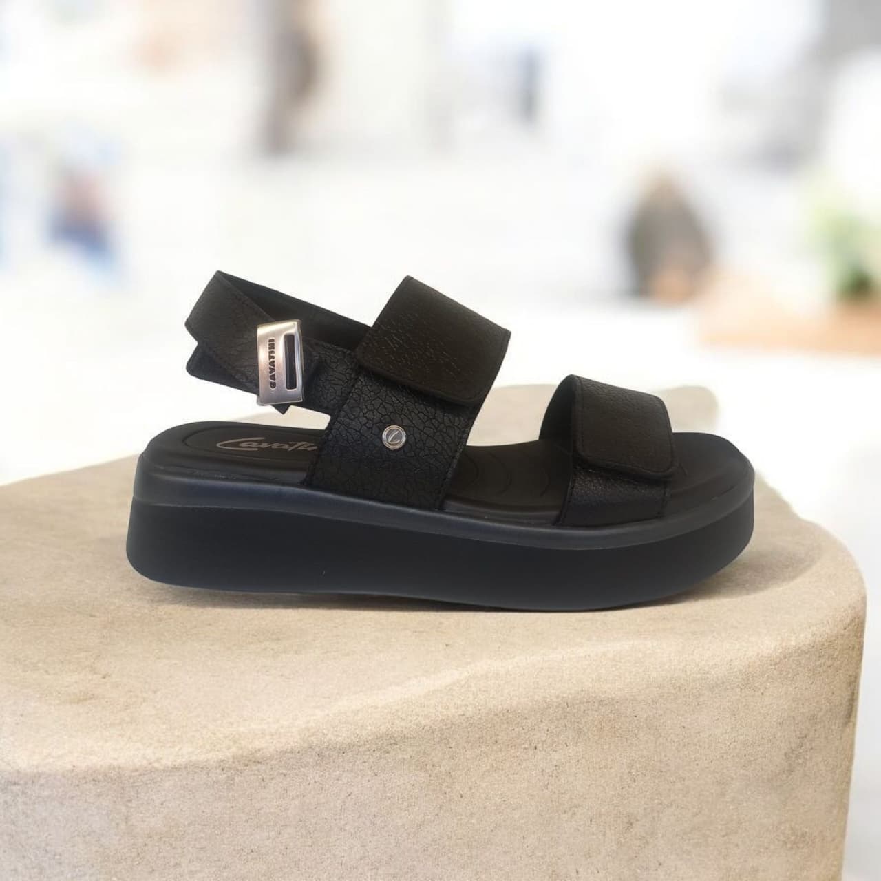 Sandalia confeccionada en cuero, con elástico. Plataforma de 4 cm. De cuero tanto por fuera como por dentro. Súper combinable!!!