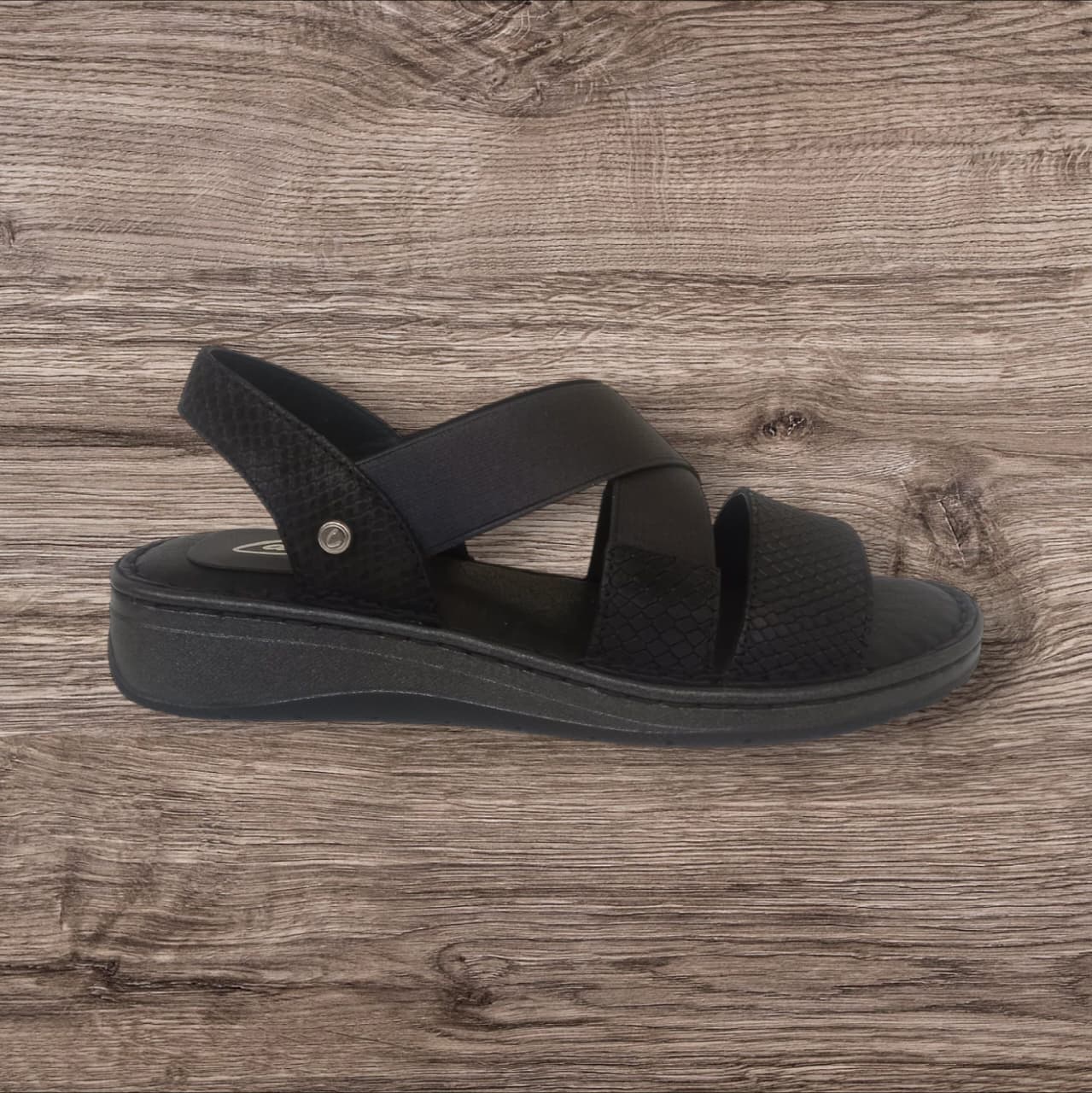 Sandalia confeccionada en cuero, con elástico. Plataforma de 4 cm. De cuero tanto por fuera como por dentro. Súper combinable!!!