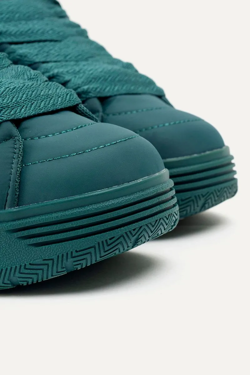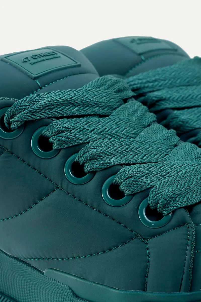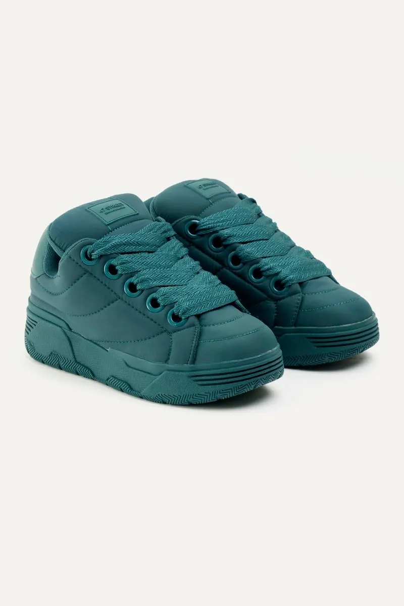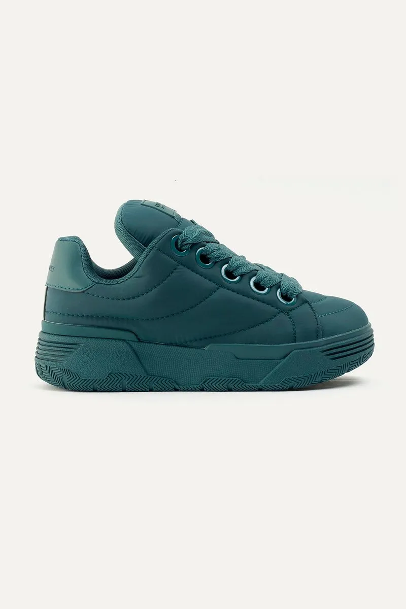 Zapatillas de nylon acolchonado con costuras al tono. Con base y cordones también al tono. Lengueta acolchonada.