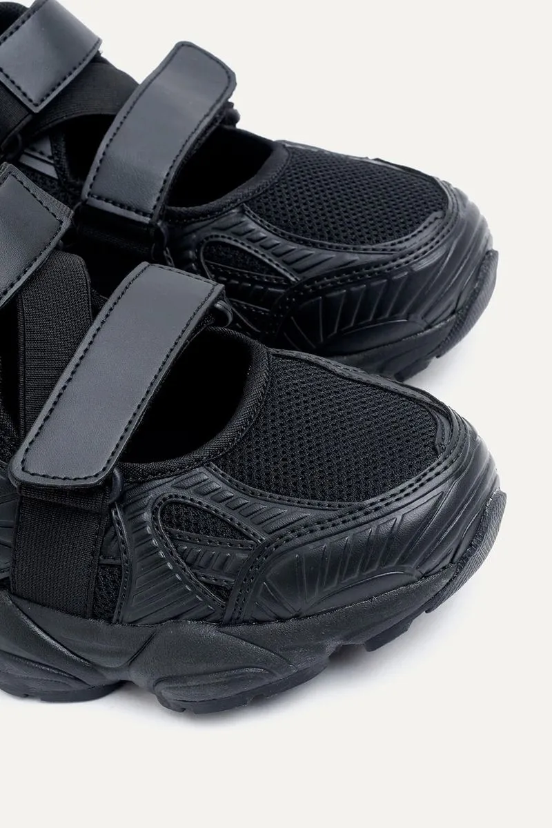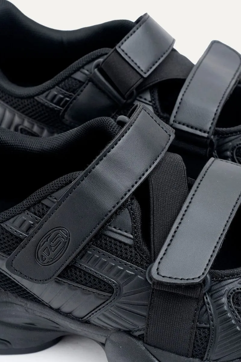 Zapatillas con base deportiva tipo guillermina en mesh y tiras de símil cuero con elástico para un ajuste cómodo. Match con vestidos casuales o jeans wide leg.