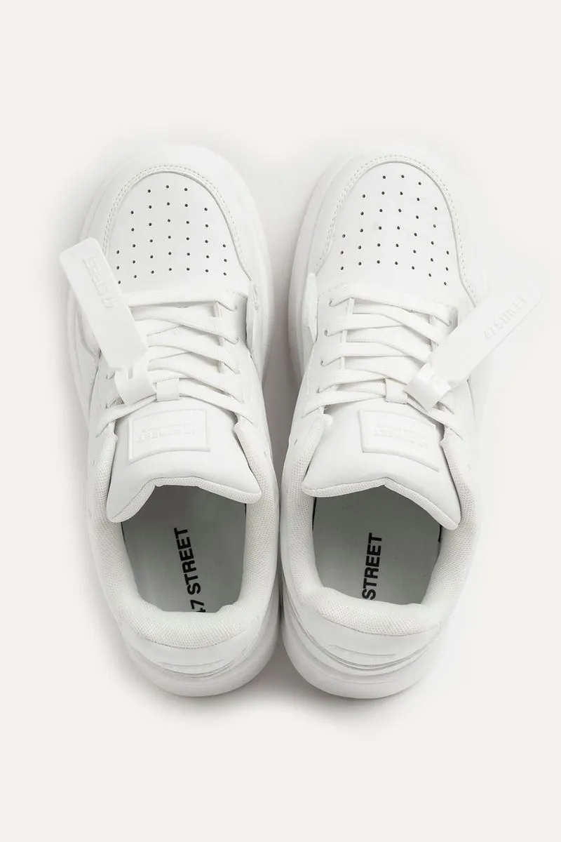 Zapatillas de mesh combinadas con símil cuero con base 5 cm. Con cordones redondeados anchos al tono. Contiene la marca bordada en el talón y además, una etiqueta de silicona de la marca en la lengueta.
