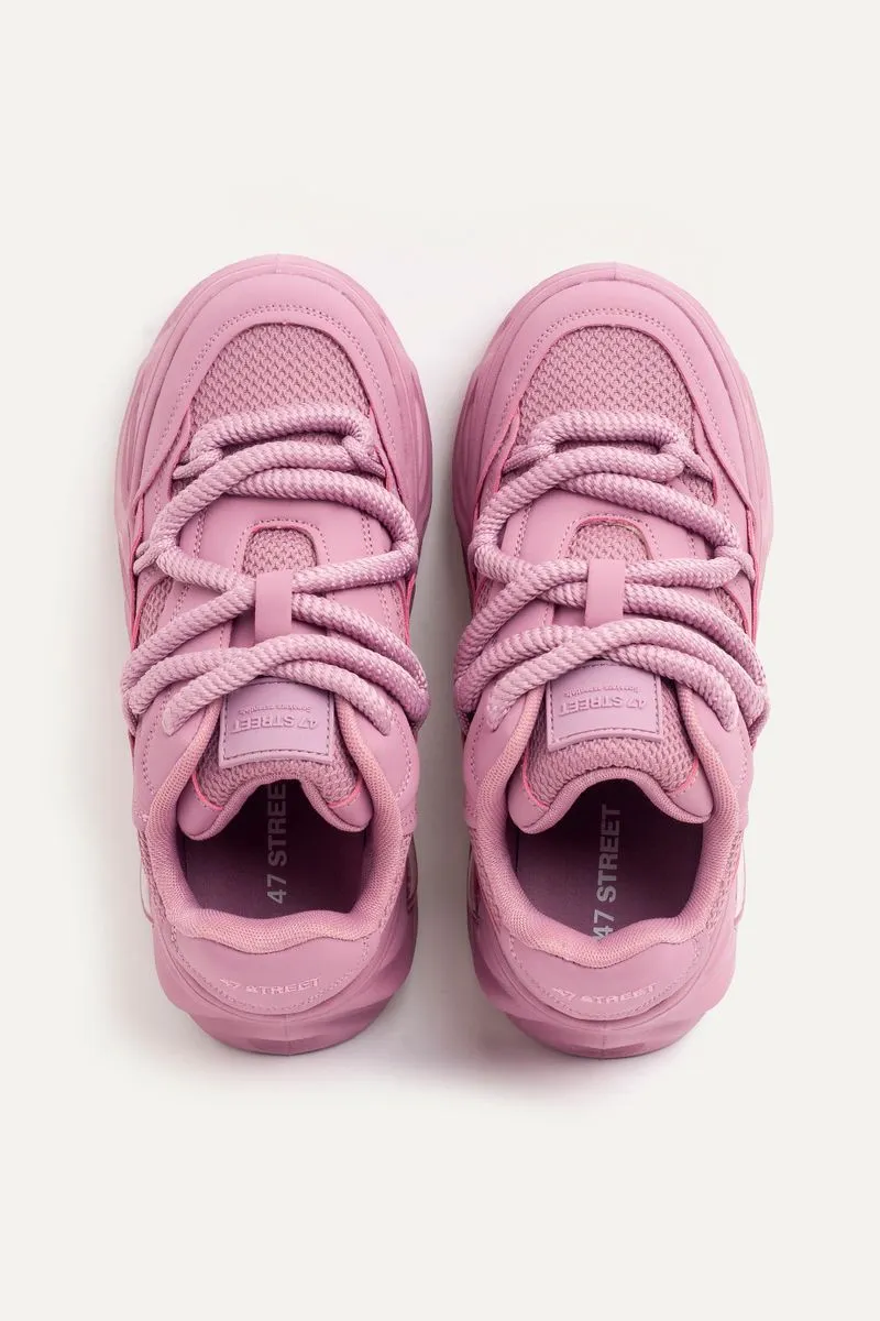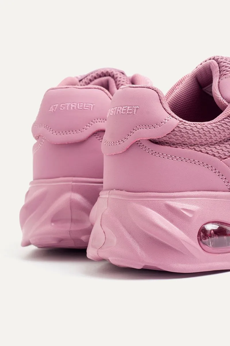 Zapatillas de mesh combinadas con símil cuero con base con cámara de aire. Con cordones redondeados anchos al tono. Contiene la marca bordada en el talón y además, una etiqueta de silicona de la marca en la lengueta.