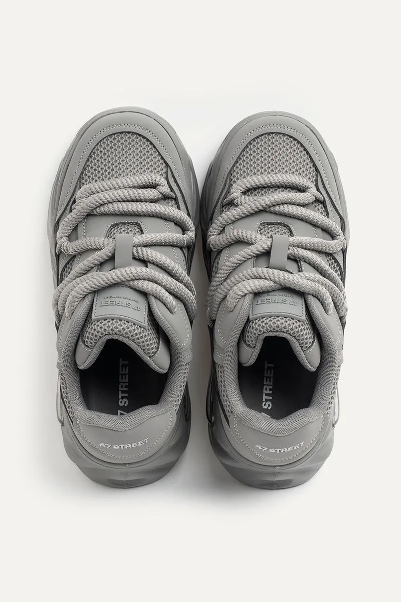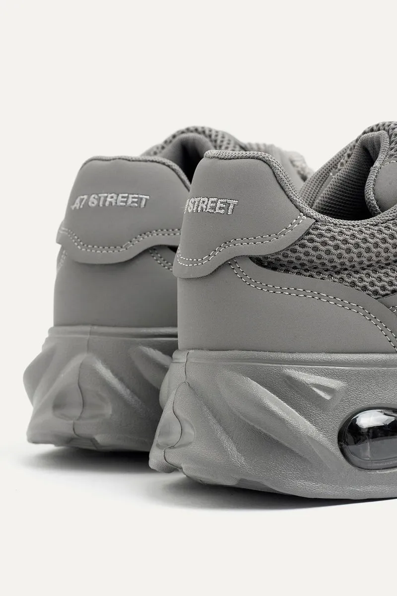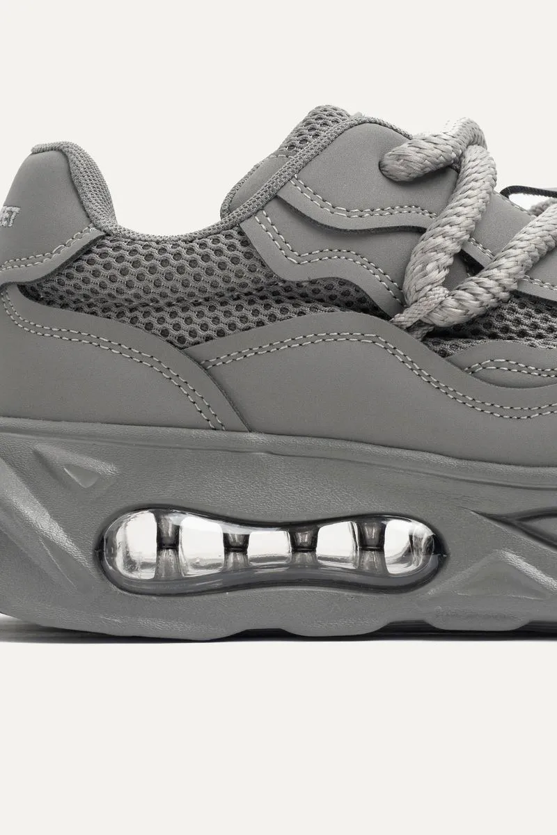 Zapatillas de mesh combinadas con símil cuero con base con cámara de aire. Con cordones redondeados anchos al tono. Contiene la marca bordada en el talón y además, una etiqueta de silicona de la marca en la lengueta.