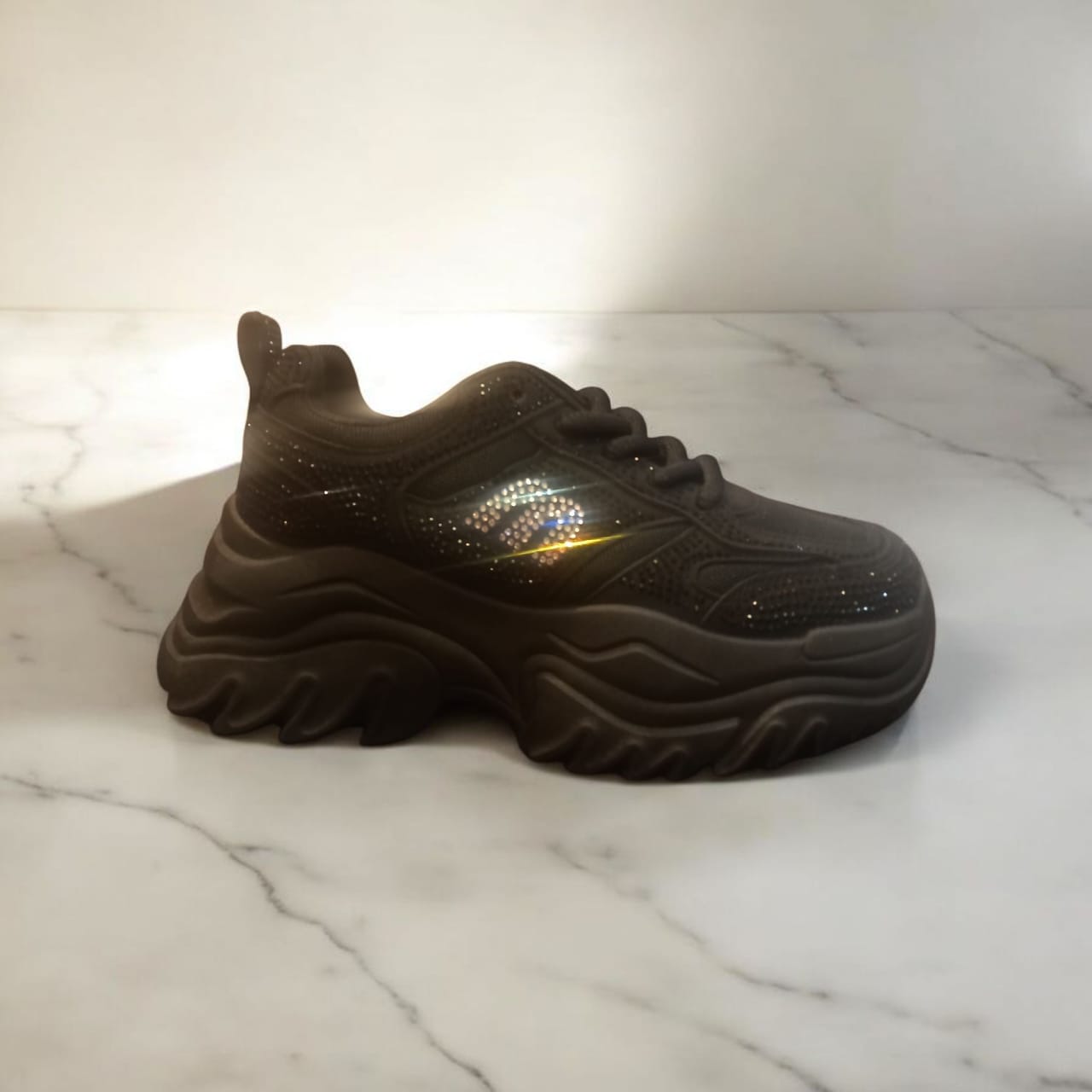 Zapatilla importada con fondo TR. Imperdible para tu uso diario. Para que te veas distinta. Negro con glitter, una zapa única-