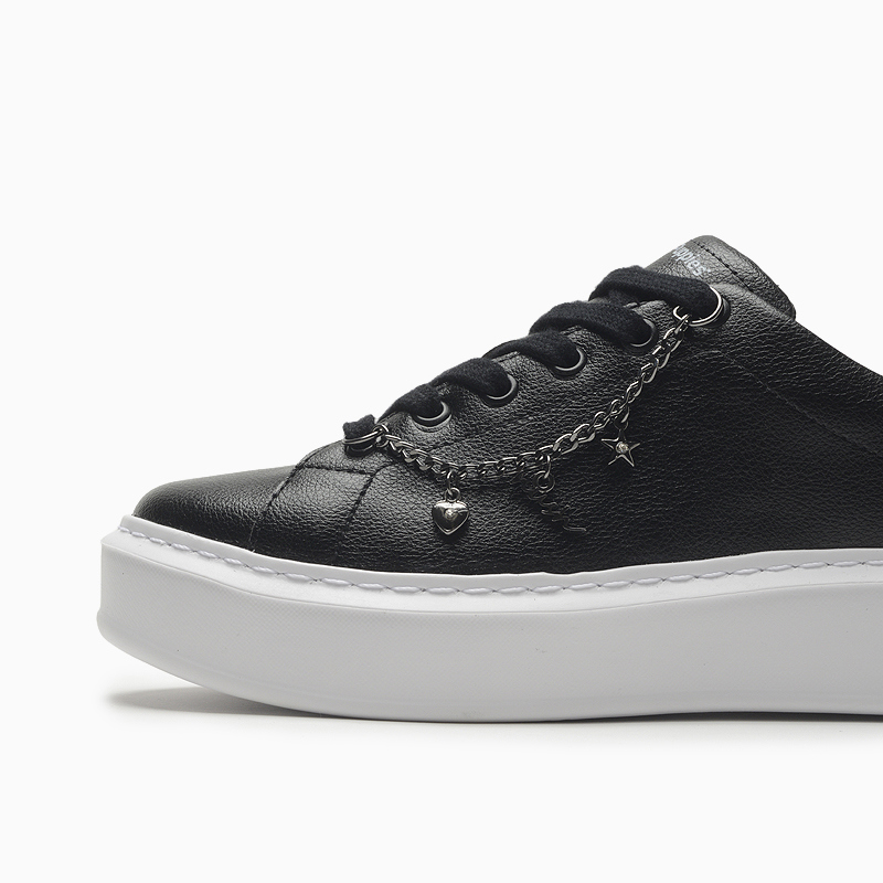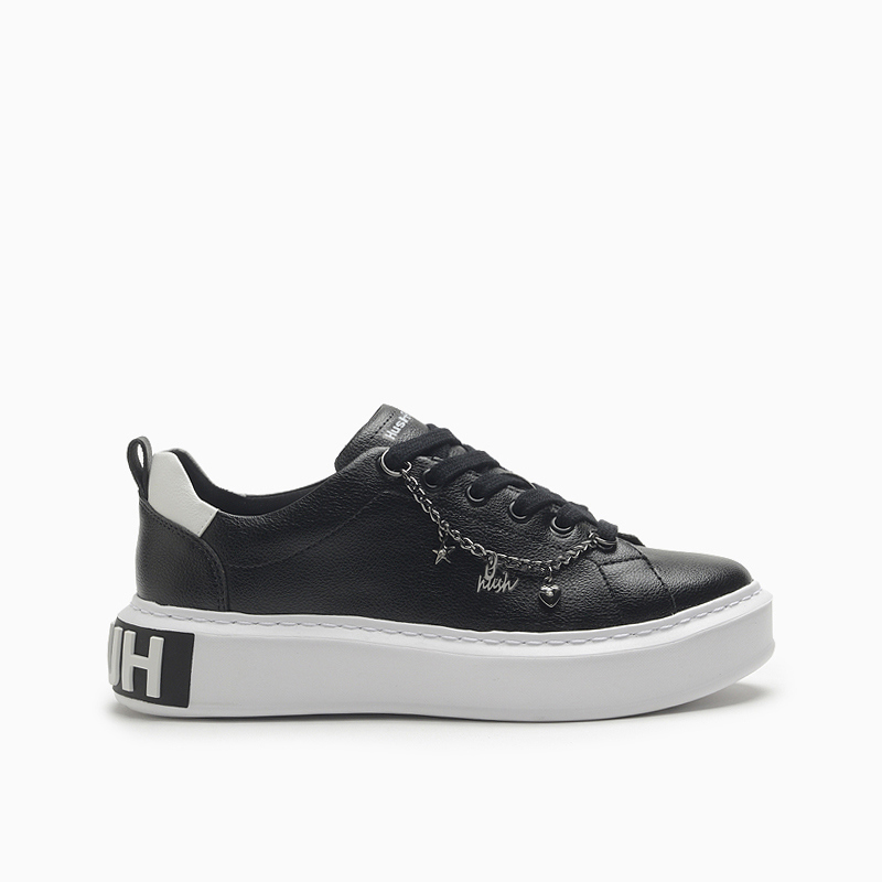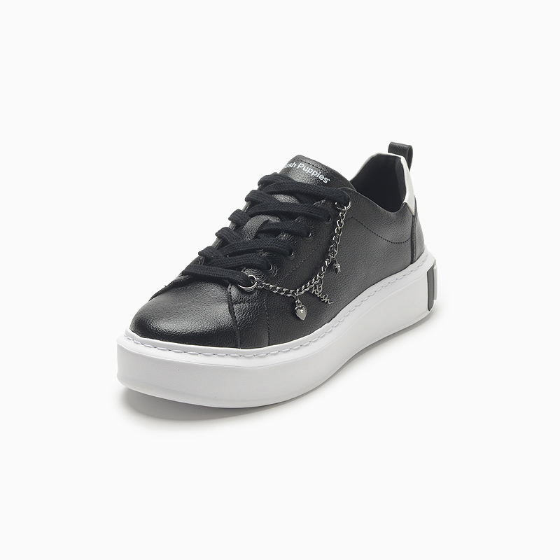 La Zapatilla Hush Puppies Badajoz Chain color negro cuenta con suela y capellada construidas con materiales súper livianos que casi no pesan, permitiéndote moverte con facilidad durante todo el día y absorbiendo el impacto de cada paso para un confort excepcional, esta es la tecnología Zero G. Está confeccionada en material sintético con pieza de talón a contra tono y un aplique de cadena con dijes en el lateral que realza su diseño. Incorpora plantilla de material sintético y EVA súper acolchada y confortable con identificación de la marca, mientras que el inserto de pieza rubber con identificación HUSH en relieve aporta estilo y durabilidad. La altura total de la suela es de 3,6 cm.