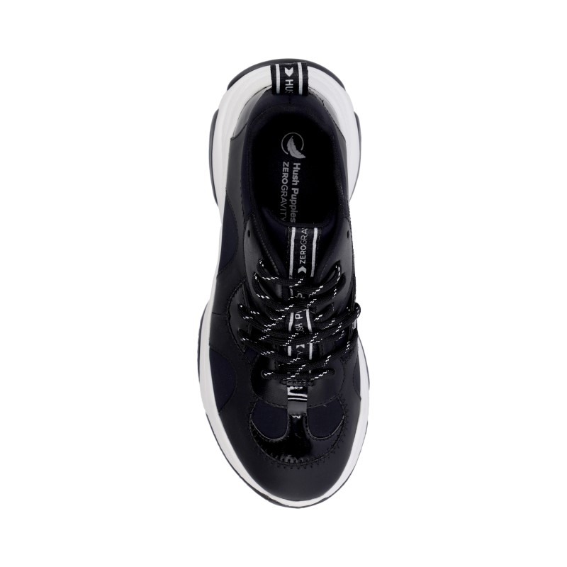 Zapatilla Hush Puppies acordonada en lycra y cuero. Plantilla de eva termoformada. Fondo de eva.