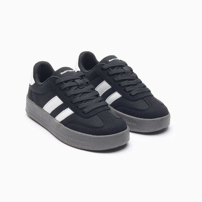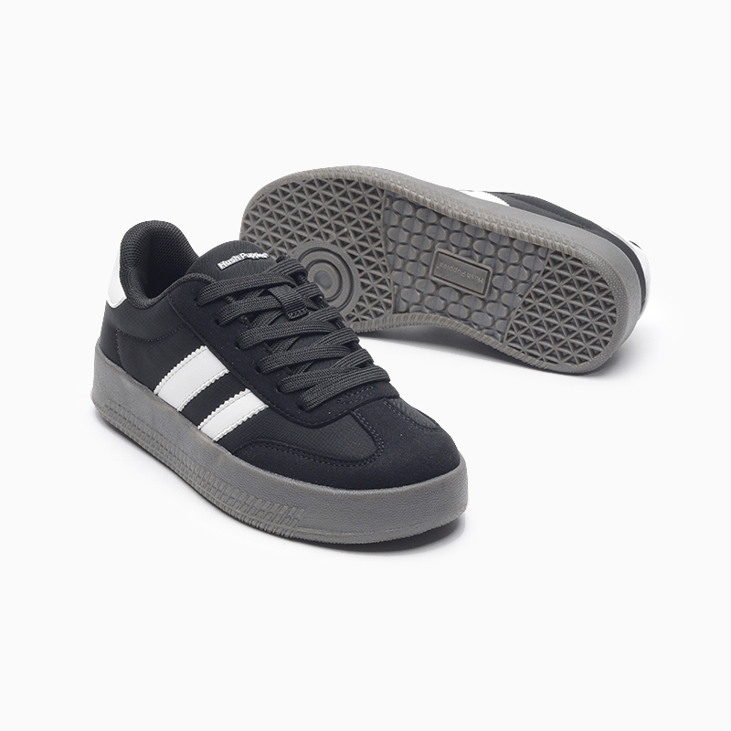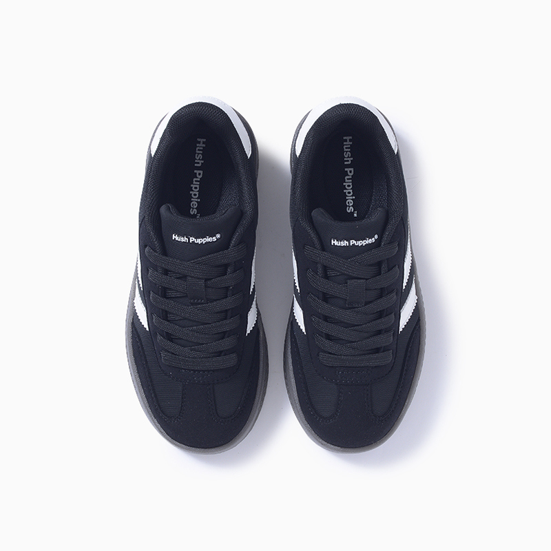 La Zapatilla Hush Puppies Merlin color negro presenta un estilo urbano confeccionado en material textil con puntera y cordonera en sintético Suede. Identificación de marca en talón y lengua, mediante aporte y alta frecuencia, aportan un diseño moderno y distintivo. Incorpora cuello espumado para mayor confort y una plantilla Comfort Foam con identificación que brinda una pisada suave y acolchonada. La suela de antideslizante con identificación garantiza tracción y durabilidad. Altura aproximada de la suela en el talón: 3 cm.