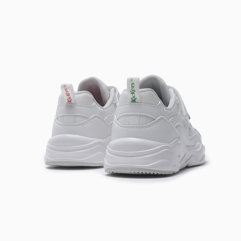 La Zapatilla Kickers Portland color blanco. Diseñada para brindar máxima resistencia y confort, su capellada combina materiales de alta calidad. Está confeccionada en microfibra, con puntera reforzada de caucho que aporta mayor durabilidad y protección, y detalles en textil sintético de nylon, reconocido por su resistencia al desgaste. Cuenta con velcro que facilita el calce y cordones elásticos que aseguran un ajuste práctico y cómodo. Incorpora además una tira de talón a tono, ideal para que los más pequeños puedan colocarlas con mayor facilidad. La suela de EVA ultra liviana proporciona un excelente agarre sobre distintas superficies. Su plantilla de material sintético termoconformado ofrece la comodidad necesaria para el uso diario, brindando soporte en el talón y el arco del pie.